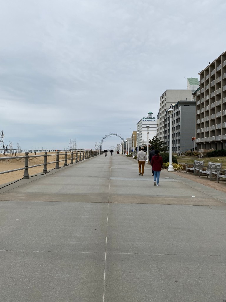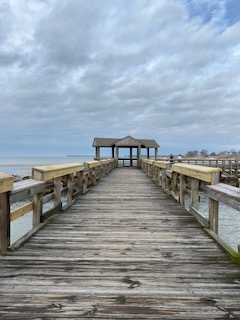 The Cape Charles village in the town of Cheriton(โ€˜a small town with a big heartโ€™ is their slogan!) is situated on the shores of Chesapeake Bay. It is a typical sleepy village in the seaside with rows of restaurants, pubs and a solitary theatre. I could visualise how busy the place would be in summer when people throng the beach. At the time we went there, many of the Airbnbs were refurbishing. The creamy taste of the refreshing hot chocolate in Cape Charles Restaurant still lingers in the mind.  The sea is clean and refreshed by the proximity to the confluence of the Atlantic Ocean. Surprisingly there are no waves. The stroll in the super soft white sand, the wooden boardwalk across the dunes and out to the bay in such a pretty beach in a perfect clear and sunny spring afternoon is a fine adventure. However, the stench was overwhelming- like that of a uncleaned fishing net.