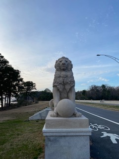 No land trail along the James River is yet another โnot to missโ landmark โ this five mile trail hiking in the woods crisscrossed by the river is a jolly good event. The cool breeze, the deafening silence, the tall trees, the occasional chirping of birds, the elegant swimming of the swans, is a serene place to walk, hike or run amongst rolling woodlands. A much sought after place for picnic are the surroundings of the Lions Bridge overlooking the tranquil James River. Taking pictures with the four stone lions is a ritual for the picknickers. At least once in a month we stroll through this beautiful urban oasis which brings a new experience every time! The last time we went, I heroically walked much ahead of the family- the dampness in the weather fogged my specks and I lost my way!! How much ever wiping the glasses did not help a bit. The chillness was overwhelming โ not a single soul in the vicinityโฆ.No one in the no land! The darkness was engulfing the woods. Walking either side of the trail will bring me out to the open- but if my guys were to search for me in the dark- I did not feel it was alright- in any case I would see their frowning face- I did not want to aggravate that to the next stageโฆso, I stay put. After a while I heard some voice from a distance and slowly approaching towards me. With a blurred vision, I saw my daughter coming -thankfully enough, I could not see the reaction on her face and for rest of the way out, I walked with my specs in the hand. Thinking about it now, it seems to be hilarious , but at that time, itย really was not!!
